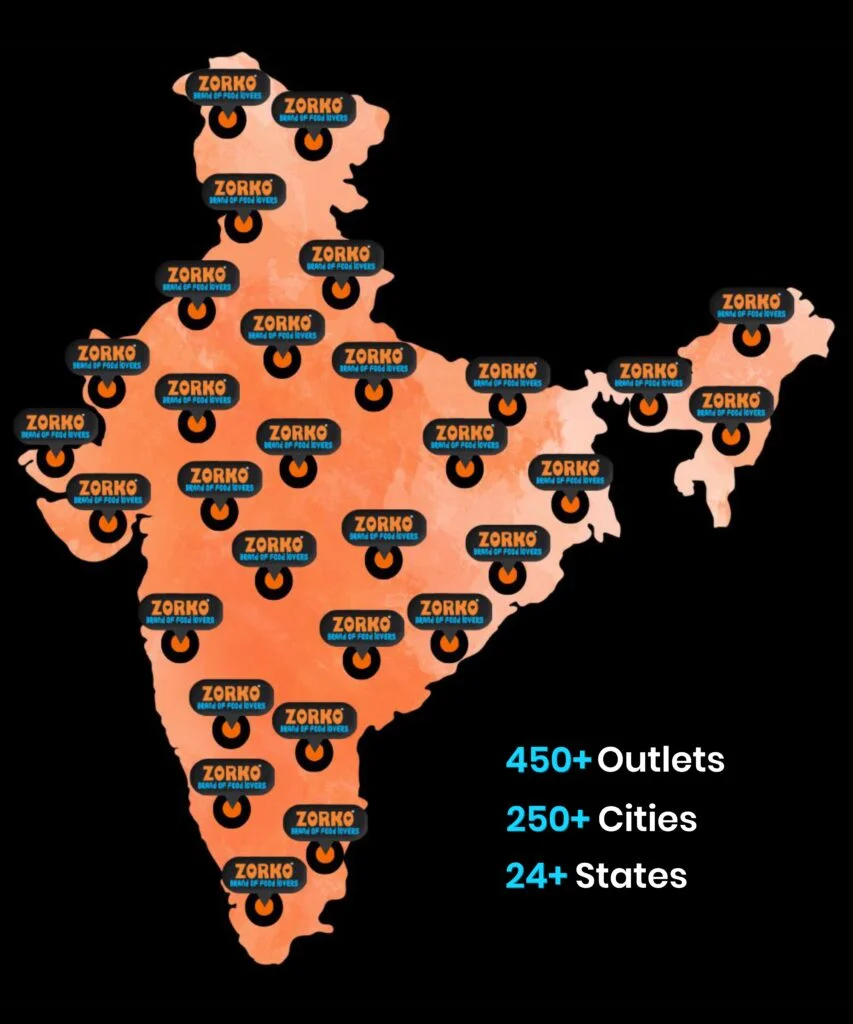 ZORKO Limited is a globally recognised company, featured on Shark Tank Season 3 and Forbes 30 Under 30 Asia, emerging as Asias’s Largest and fastest-growing pure vegetarian chain. Driven by Ethics, Trust, and Sustainability, we advocate for reduced meat consumption & animal welfare. We’ve expanded to 450+ outlets across 250+ cities in 24+ states, creating 1000+ jobs and serving high-quality vegetarian food at affordable prices.